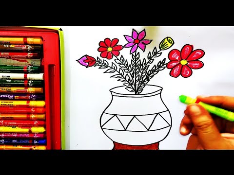 Flowerpot Drawing For Kids Oil Pastel Colors Let S Try Youtube